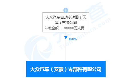 股东信息显示,该公司由大众汽车自动变速器(天津)有限公司全资控股。