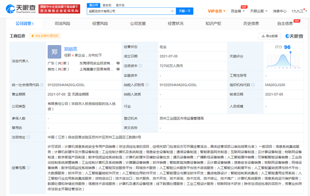 三言财经 7月12日消息,天眼查App显示,7月8日,超聚变技术有限公司成立,注册资本7.27亿,法定代表人为郑丽英,经营范围包括信息安全设备制造;人工智能基础资源与技术平台;大数据服务;软件开发;集成电路设计等。股东信息显示,目前该公司由华为技术有限公司全资持股。