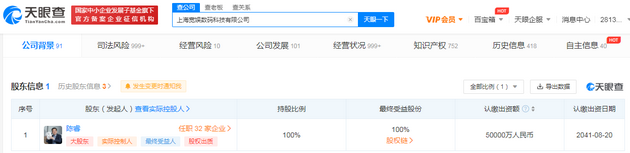 股东信息显示,该公司由陈睿全资持股。