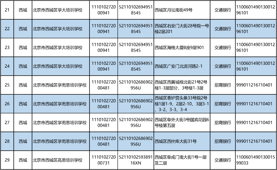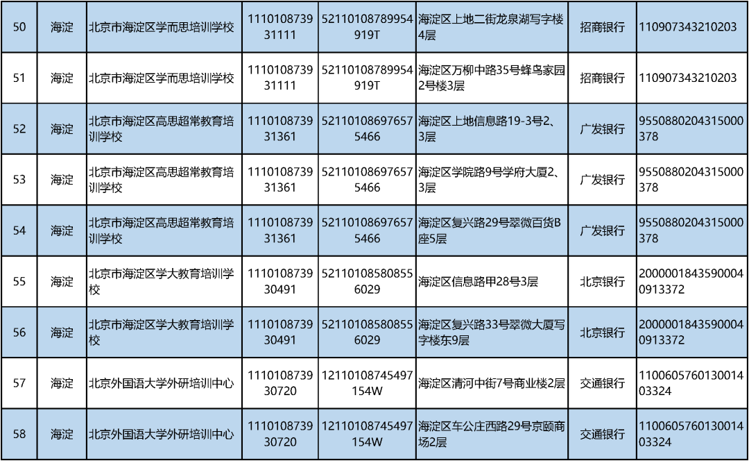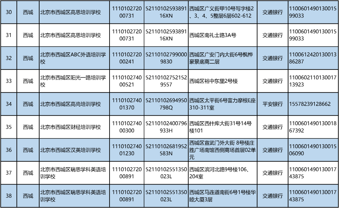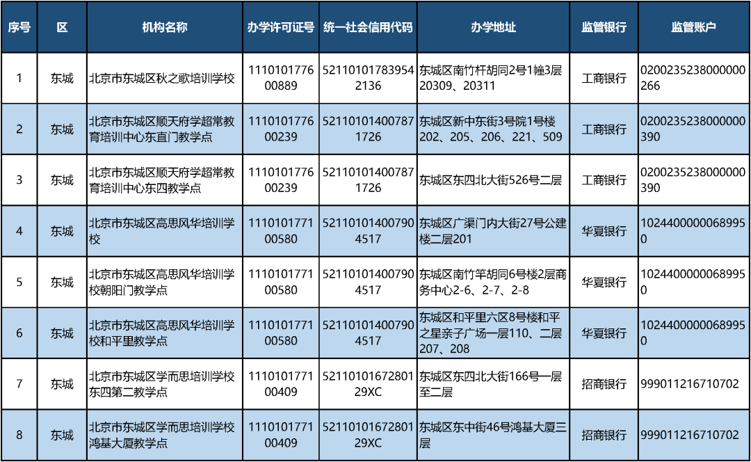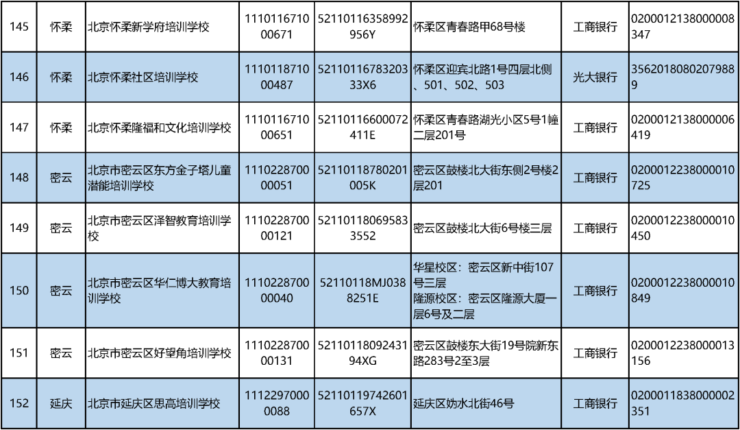 三言财经9月11日消息,据北京日报客户端,今日,市教委汇总公布义务教育阶段学科类校外培训机构“白名单”,首批共有152家非营利性机构。公示内容包括培训机构名称、办学许可证号、统一社会信用代码、办学地址、监管银行和监管账户等各类信息。