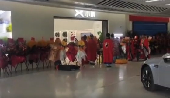 三言财经 2月28日消息,近日有网友上传一段视频,视频内容显示,一家小鹏汽车线下门店门口疑似一群道士在做法事。