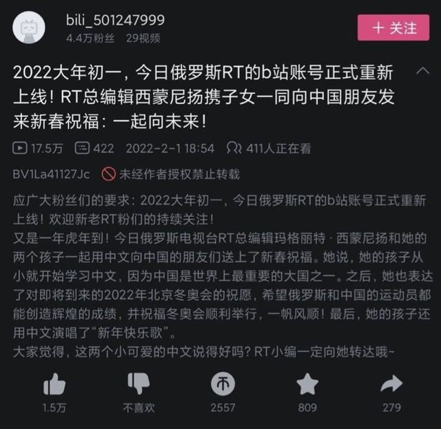 三言财经3月3日消息,今日上午,有不少网友发现,B站上“RT 今日俄罗斯”账号头像、昵称被暂时清理,不久后恢复正常。