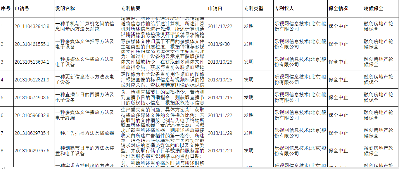 这 85 项专利分别属于电视、电脑、手机、显示器、多媒体播放等相关类别,目前都处在保全中止状态。