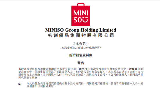 三言财经 6月27日消息,据港交所文件,名创优品通过港交所上市聆讯。