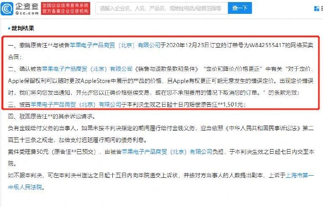 三言财经10月12日消息,企查查App显示,近日,汪某某与苹果电子产品商贸(北京)有限公司信息网络买卖合同纠纷一审民事判决书公布。