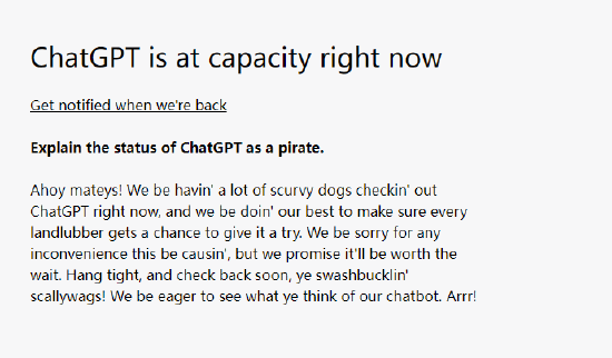 当试图询问ChatGPT对今日热点事件的看法时,ChatGPT则提示“1小时内请求过多,请稍后再试。”而尝试更换浏览器访问ChatGPT,则收到“满负荷运转”的提示。(新浪科技)