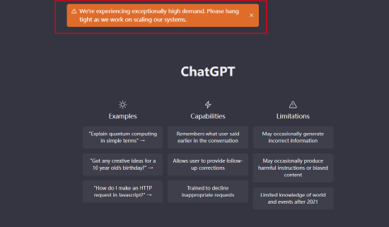 据新浪科技消息,ChatGPT再次因访问量激增而宕机。ChatGPT首页提示“当前需求异常高,我们正调节系统,请稍等。”