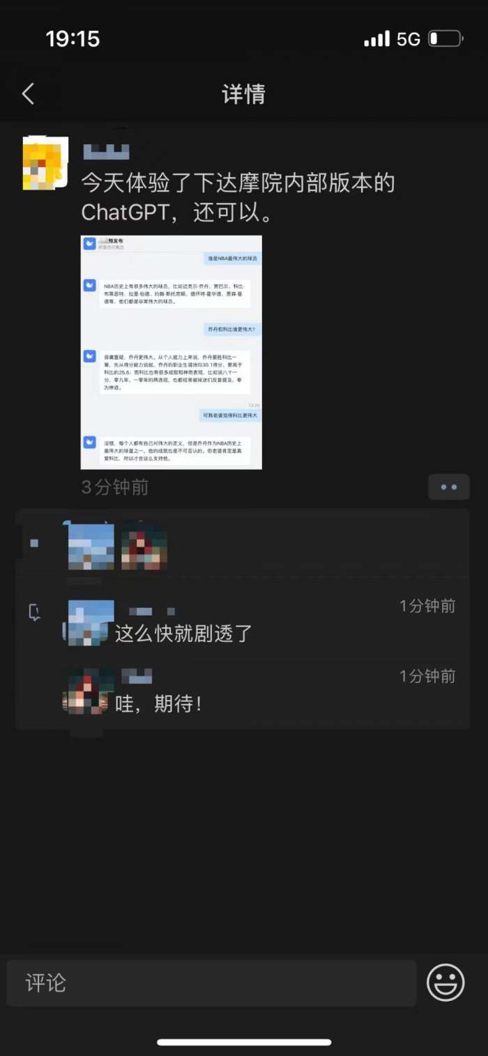 据阿里巴巴一名资深技术专家爆料,阿里达摩院正在研发类ChatGPT的对话机器人,目前已开放给公司内员工测试。从曝光截图来看,阿里巴巴可能将AI大模型技术与钉钉生产力工具深度结合。(南方财经)