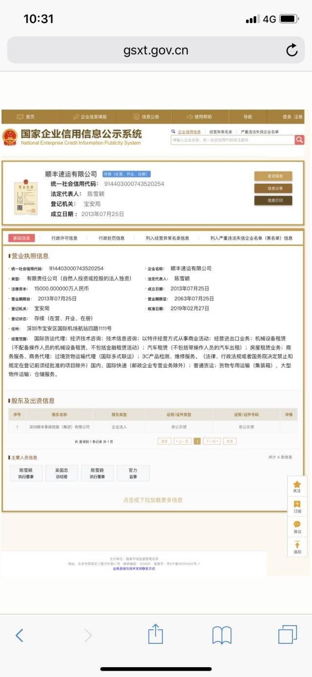 三言财经 3月1日消息,据国家企业信用信息公示系统显示,顺丰控股股份有限公司全资子公司顺丰速运有限公司的工商信息发生变动,企业法定代表人由王卫变更为陈雪颖,同时王卫不再担任执行董事,由陈雪颖接任。