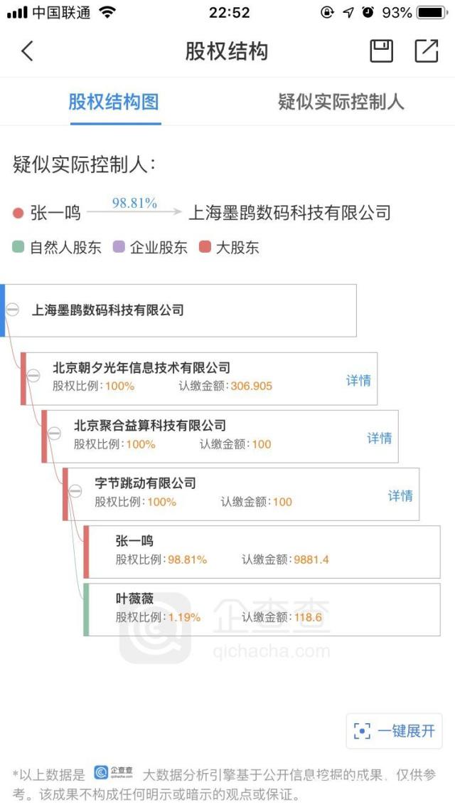 三言财经 3月18日消息,字节跳动在近期收购了一家游戏公司——上海墨鹍数码科技有限公司。根据该公司在企查查的更新消息显示,目前上海墨鹍数码科技有限公司的法定代表人已改为今日头条的高级副总裁张利东。从上海墨鹍现有的股权结构来看,字节跳动有限公司已经成为上海墨鹍的控股公司。此前上海墨鹍曾上线过《全民无双》《决胜武林》等游戏作品。
