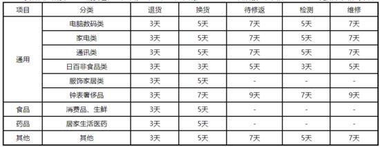 根据规则,在消费者因产品质量问题需要退、换、维修时,供应商应在规定时效内,完成售后服务,且时长应从“供应商确认收货时间”至“供应商返回商品送达至京东的时间”进行计算。据悉,大部分商品的退货时效为3天。