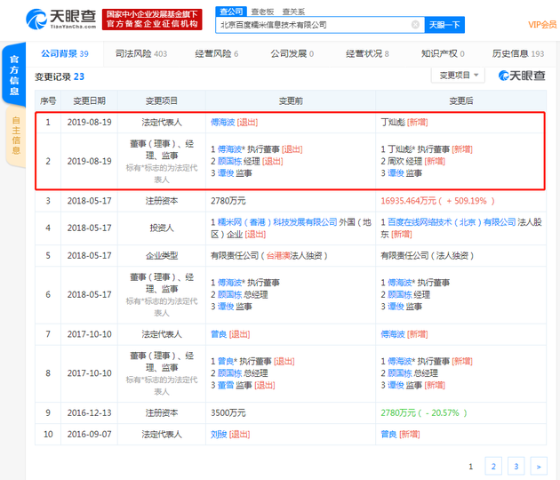 三言财经8月20日消息,天眼查数据显示,8月19日,百度糯米的运营主体北京百度糯米信息技术有限公司发生工商变更,原百度糯米总经理傅海波卸任法定代表人、执行董事,由丁灿彪接任。