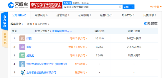 数据显示,深圳芥舟科技有限公司成立于2018年8月,法定代表人为王俊龙,公司注册资本为667万人民币,公司经营范围包括国内贸易,经营进出口业务等。