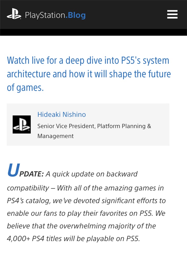 三言财经 3月21日消息,今日索尼PlayStation官方再度更新博客文章,宣布新款索尼PS5将支持4000多款PS4游戏,此外还将加入对更高帧率和分辨率的支持。