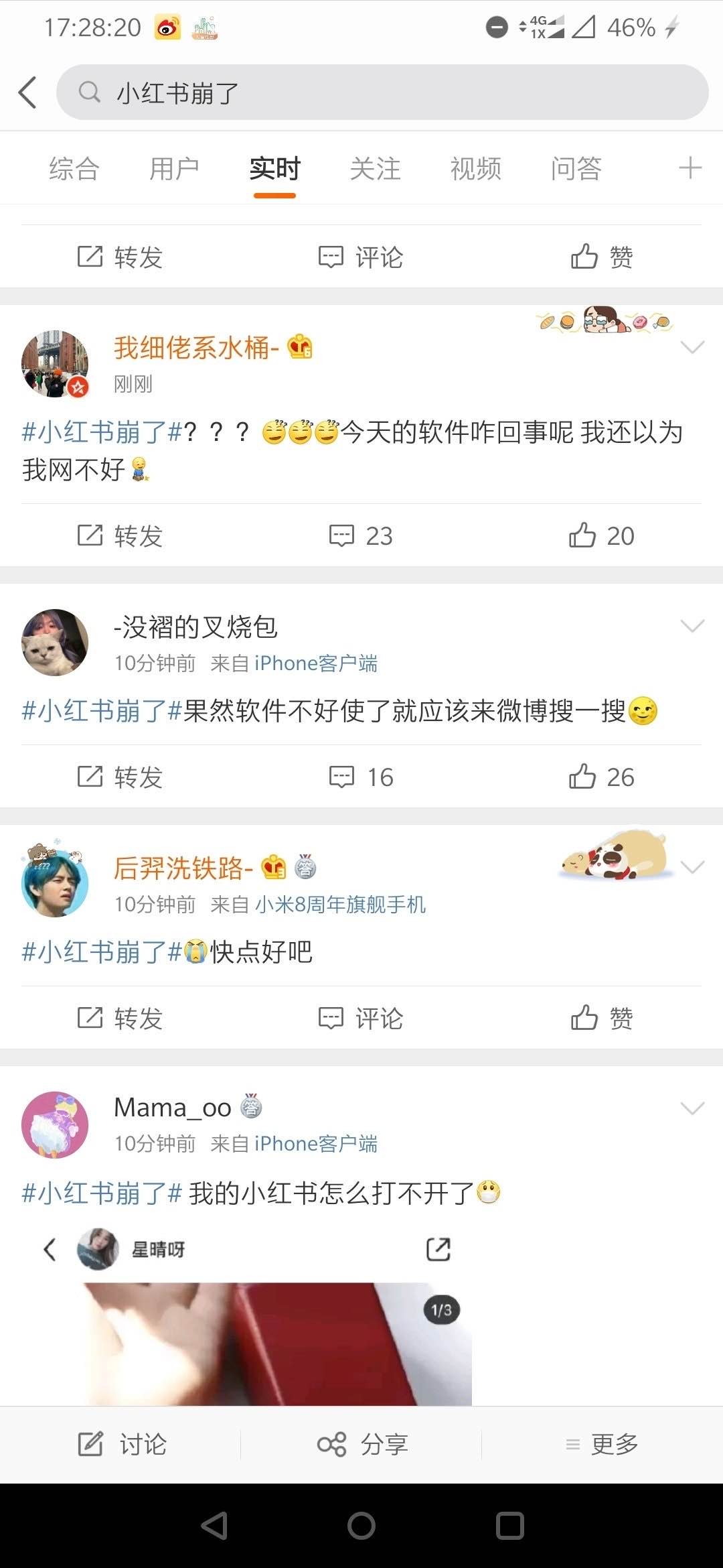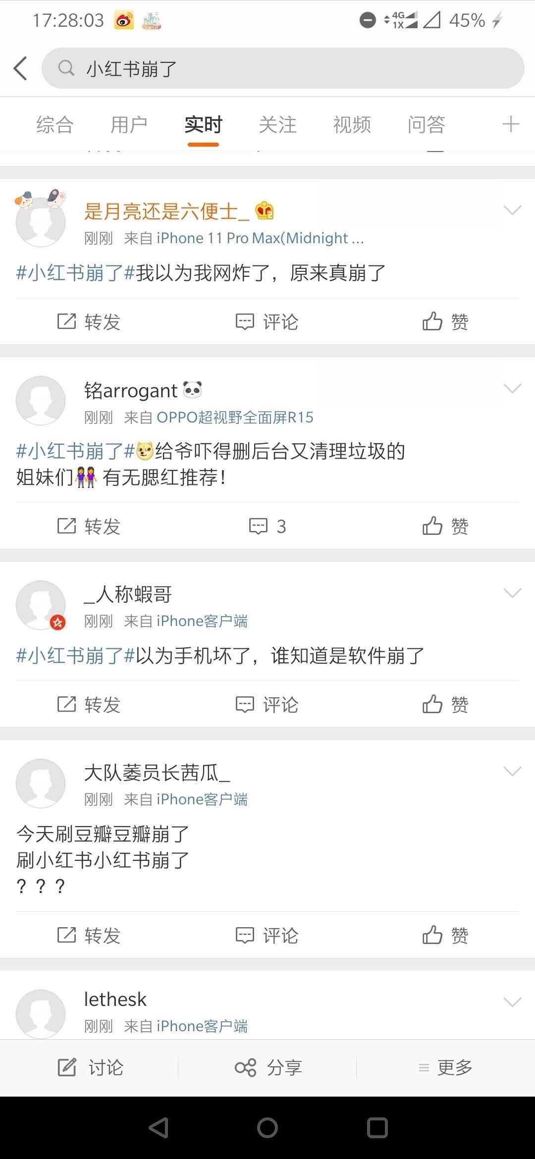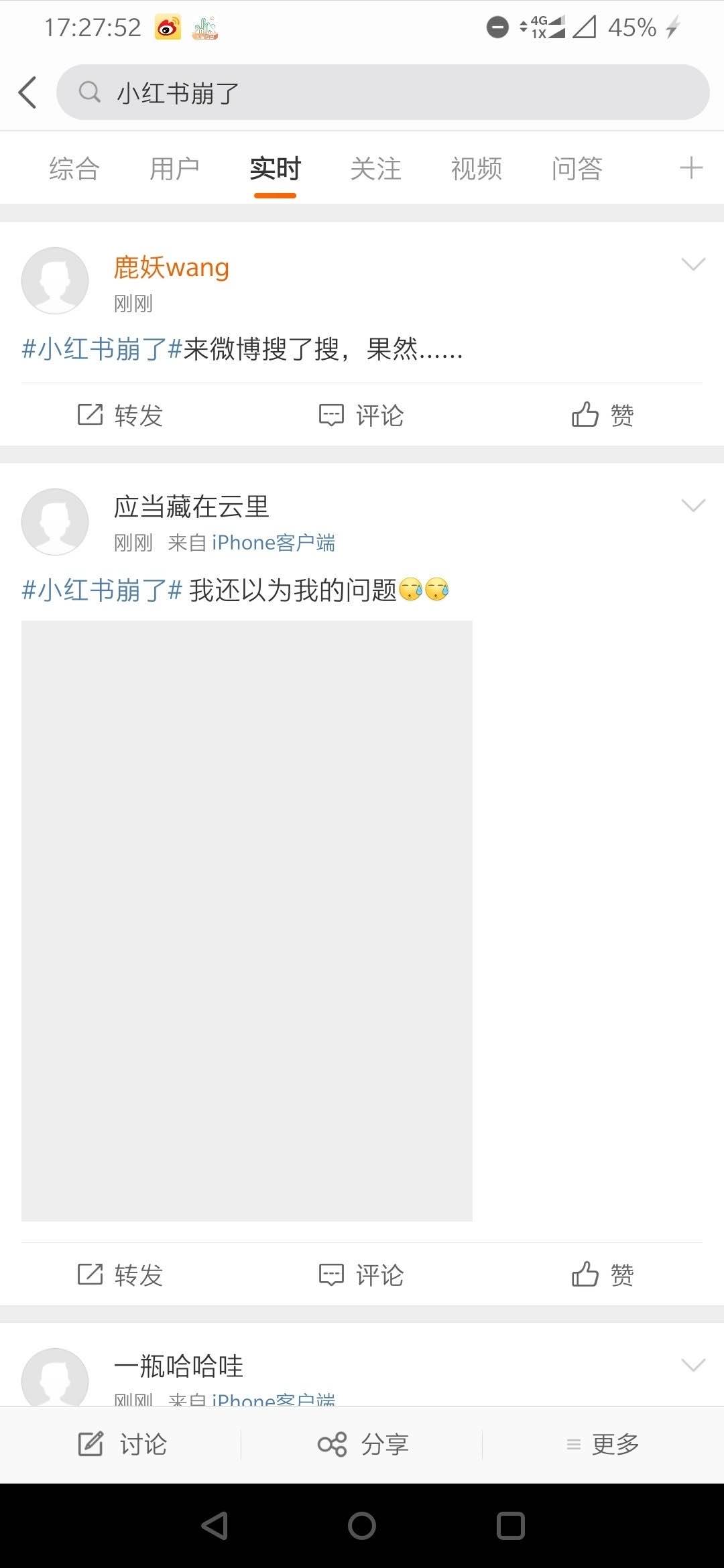 网友表示,“以为是手机坏了,谁知道是软件崩了。”“小红书打不开了。”