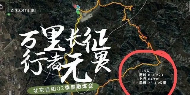 据该网友发布的一张“北京自如Q2季度融炼会”图片显示,128人用时8小时完成了25.18公里的路程,上升高度649米。