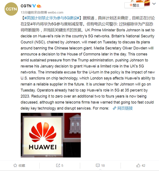三言财经 7月14日消息,据报道,具体计划还未确定,目前正在讨论在2至4年内将华为5G参与度削减至零。但有电讯公司警示: 过快移除华为产品恐将终断服务,并拖延关键技术的发展。