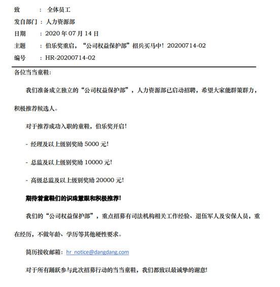 三言财经 7月17日消息,据当当网内部邮件显示,当当已经成立了独立的权益保护部,以防范李国庆行政拘留期满后扰乱公司正常工作秩序的可能。