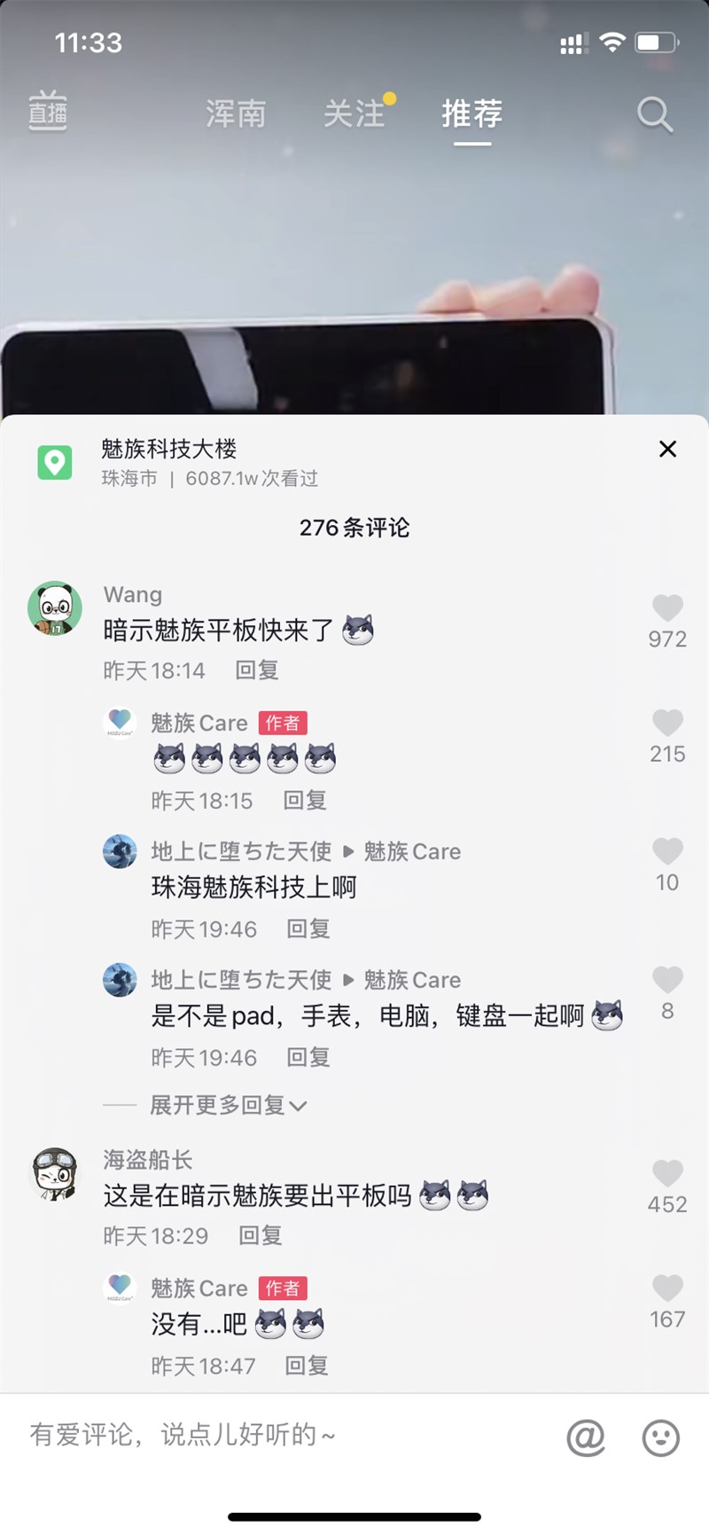 有网友猜测,这或是魅族官方在暗示将推出新款平板电脑产品,对此魅族 Care 官方抖音号用 “狗头”表情符号回应了网友的猜测,使得这个猜测的真实性变得更高。