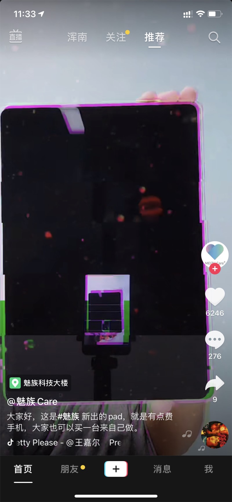 三言财经 10月11日消息,魅族Care官微和抖音账号放出了一个视频,称 “研究一下怎么把魅族 17 Pro 变成 1 台 pad”,视频中,一部魅族17 Pro从上到下移动,然后通过剪辑形成了一个平板电脑的形状。