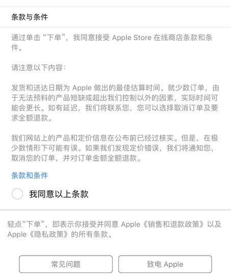 苹果在相关购买条款中明确,如果系定价错误将取消订单并全额退款。