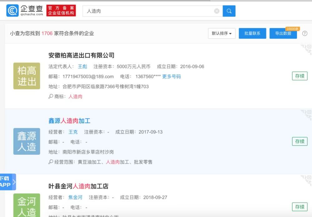 在中国,2019年被称为“植物基食品元年”,“人造肉”风潮突起。企查查数据显示,目前国内有关人造肉的公司已超1700家。